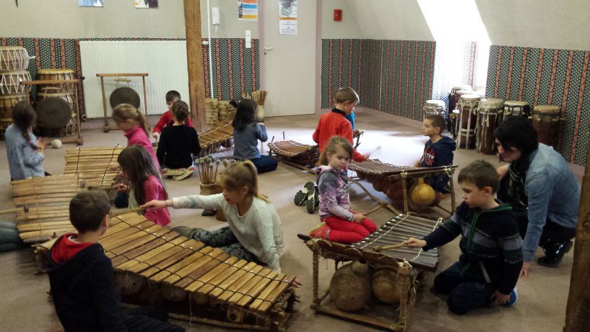 tous les élèves de l’école sont allés à Angers découvrir les instruments de tous les continents et les tester.