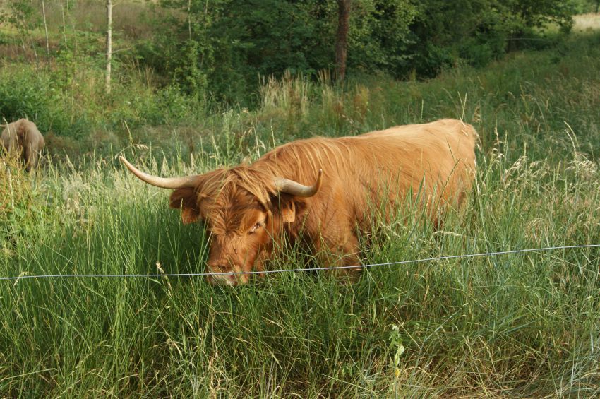 Depuis fin juin,la coulée de l’Avoye accueille 4 ânes pie noire d’Irlandeet 2 vaches Highland (race bovine écossaise).